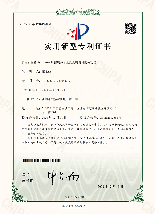 首頁->產品認證->一種可以控制多臺直流無刷電機的驅動器